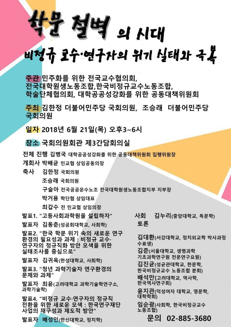 비정규교수·연구자 문제 국회토론회 안내