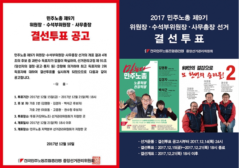 지난 11월 30일 - 12월 6일까지 실시한 민주노총 총연맹 위원장 등 임원선거 투표에 참여하신