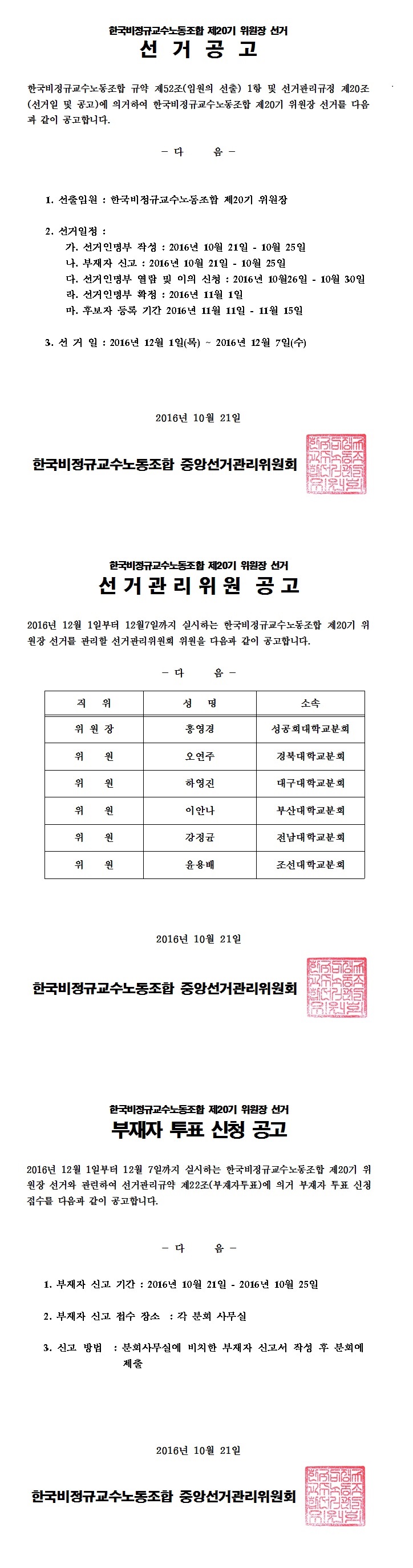 한국비정규교수노동조합 20기 위원장 선거 공고 페이지 정보 작성자 관리자 작성일16-10-20 19:44 조회8,460회 댓글0건 이전글 다음글 목록 본문 한국비정규교수노동조합 20기 위원장 선거 공고 추천 0 댓글목록 등록된 댓글이 없습니다. 이전글 다음글 목록