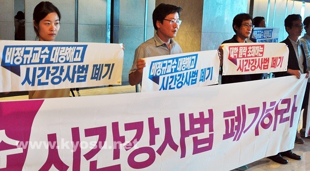 이들은 내년 1월 1일부터 시행 예정인 ‘시간강사법(고등교육법 일부법률개정안)’을 폐기하고 시간강사의 지위와 처우를 개선하는 대안을 마련해야 한다고 촉구했다.