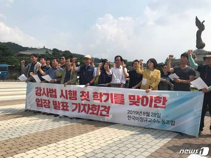 대학 시간강사들이 오는 2학기 강사법(고등교육법 개정안) 첫 시행과 관련해 고용안정 대책을 촉구했다.