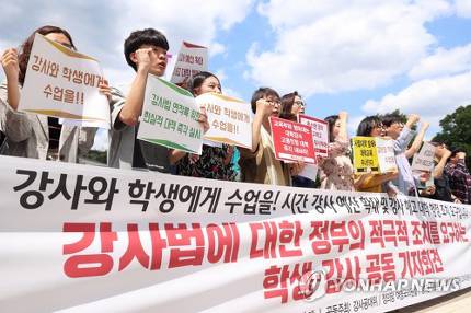 황희경 기자 = 2학기 이른바 '강사법'(개정 고등교육법) 시행을 앞두고 올해 1학기 대학에서 전업 시간강사 4천700여명이 강의 기회를 잃은 것으로 조사됐다.