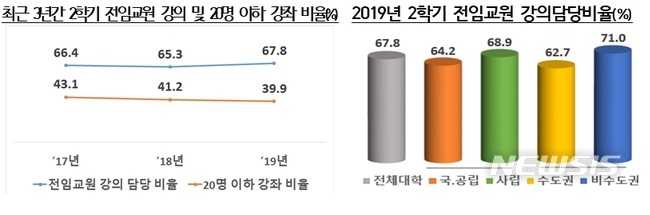 전임교원 강의 담당비율 67.8%.."실제 부담 알 수 없어"