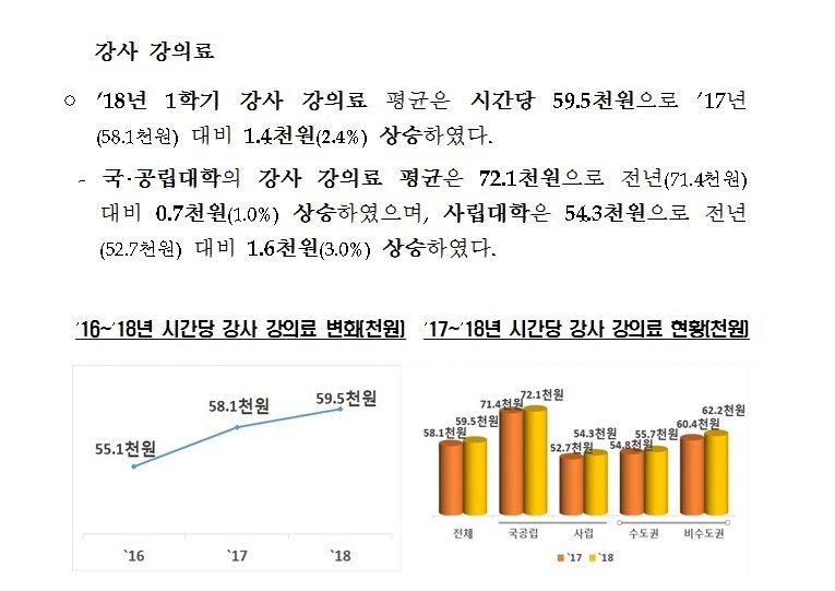 전임교원 강의담당 비율 / 비정규교수 강의료